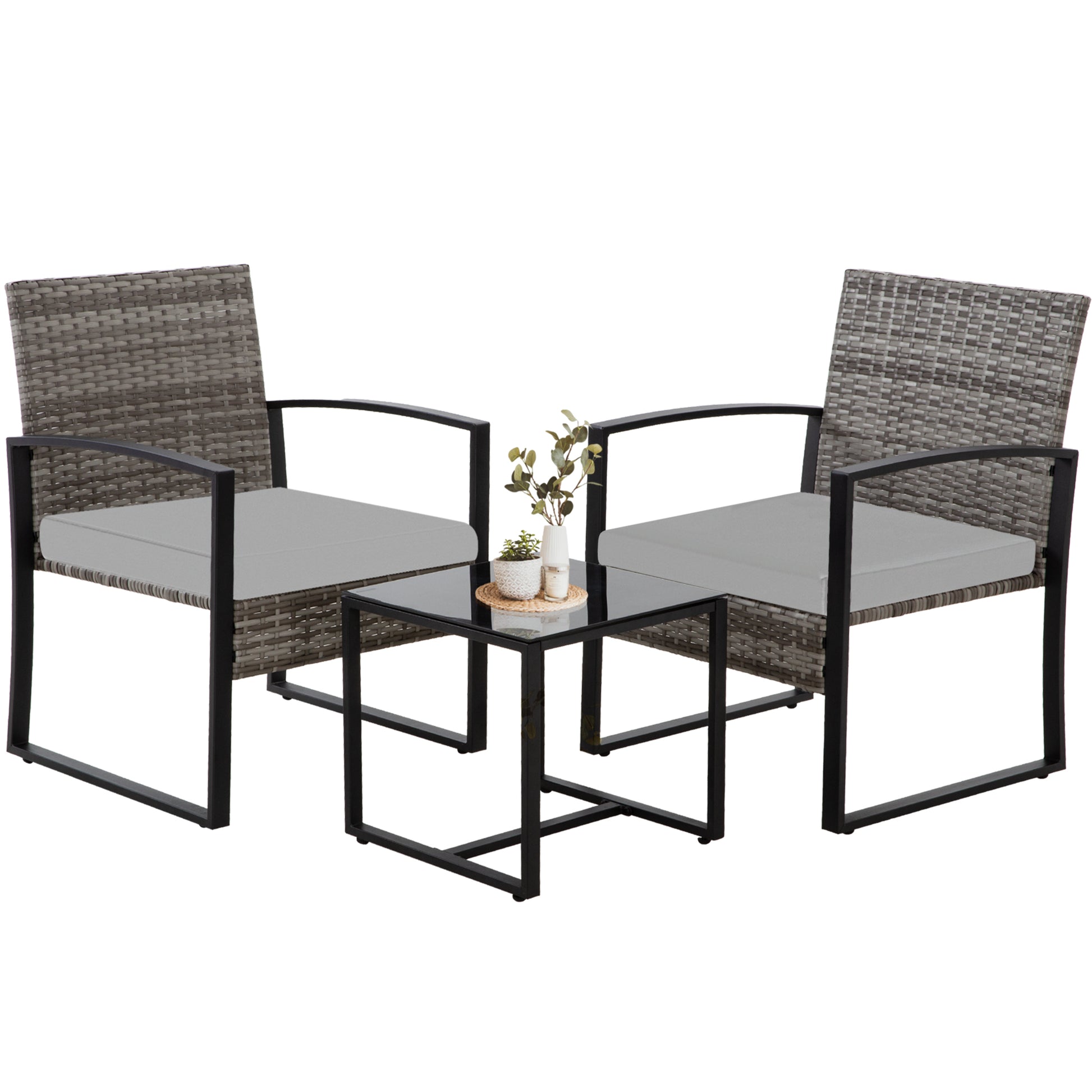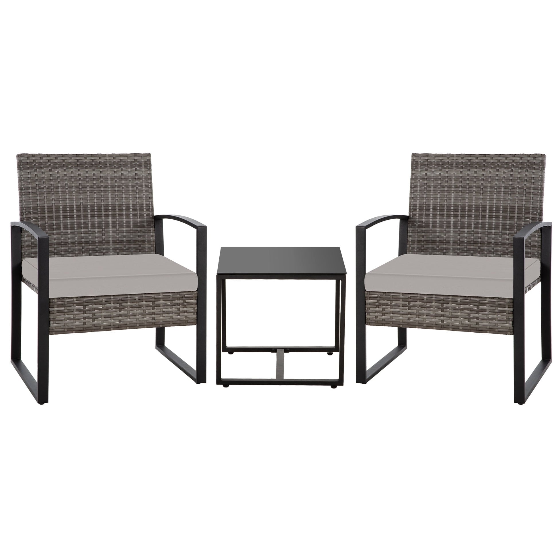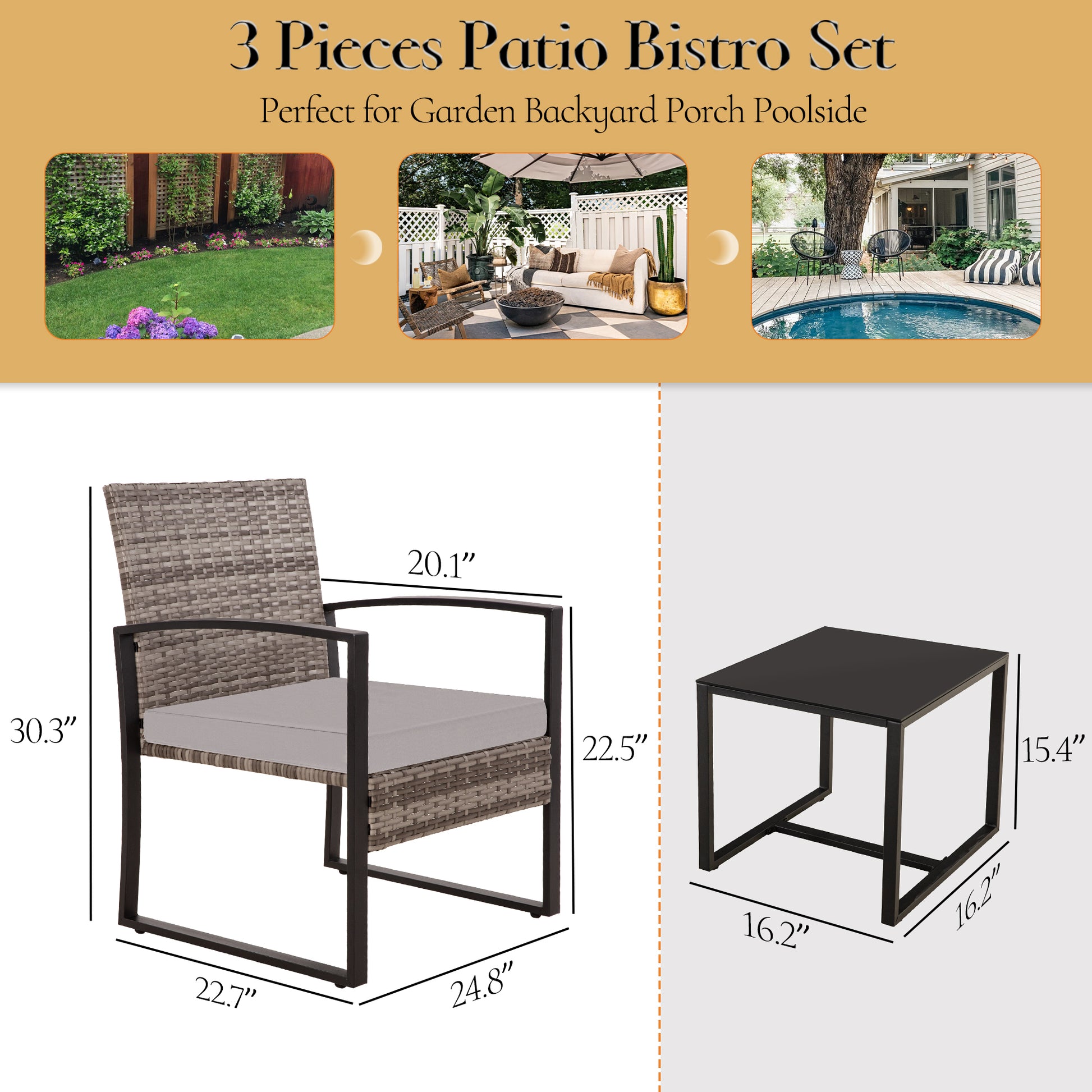 Ainfox 3 Piece Patio Bistro Set, Outdoor Furniture Set Wicker Rattan Chairs and Coffee Table Conversation Set.GYGY