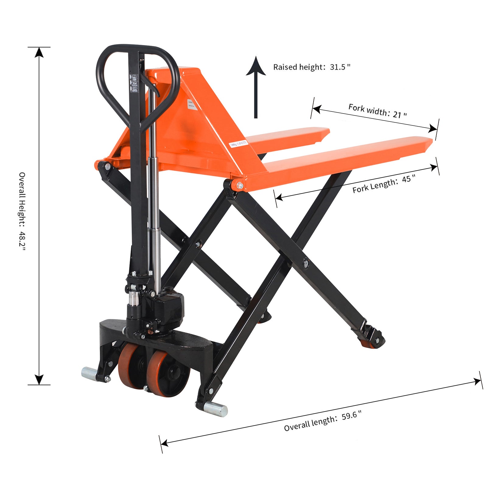 Pallet Jack Lift 2200lbs. 45"Lx21"W Fork 3.3'' lowered. 31.5'' raised O-1014